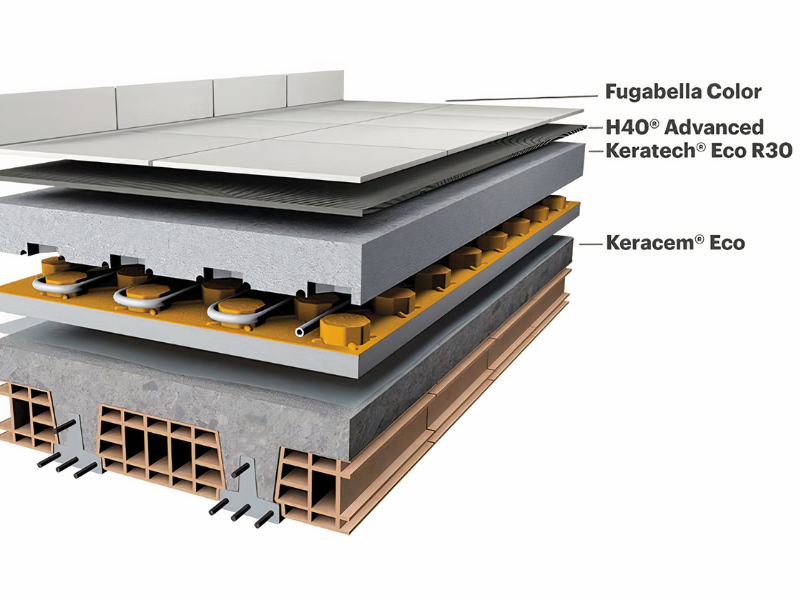 Kerakoll’s range of mineral screeds provides eco-friendly, high-performance solutions for creating stable, durable substrates across various applications. Keracem Eco, a hydraulic binder, and its ready-to-use variants such as Keracem Eco Pronto and Prontoplus, deliver rapid drying and high mechanical resistance, suitable for underfloor heating systems and areas exposed to heavy traffic. These screeds support a wide range of floor finishes, including ceramic, hardwood, and resilient materials, and enable quick turnaround times—laying tiles within 24 hours and hardwood within 5 days. Rekord Eco Pronts stands out for its extra-rapid setting, allowing tile laying after 6 hours and hardwood floors within 24 hours, making it ideal for time-sensitive renovations.